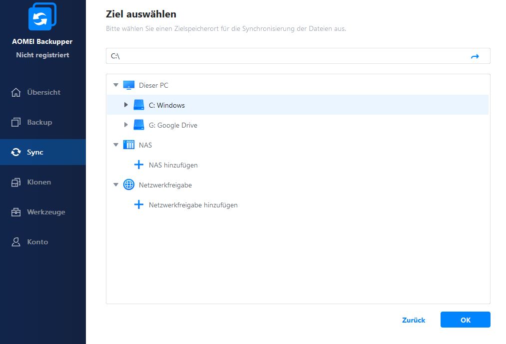 Aomei Backupper: Datensynchronisierung mit USB-Stick und Dropbox, OneDrive & Co