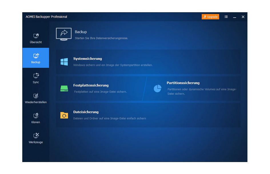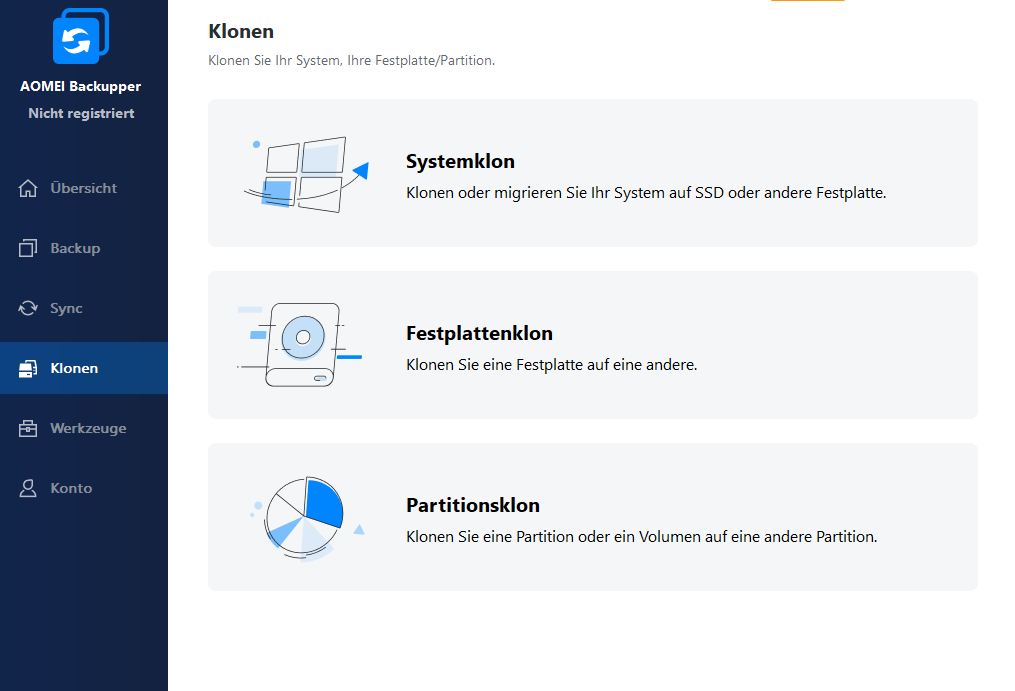 Zuverlässige Windows-Backup-Software zum Schutz des Betriebssystems, der Daten und Anwendungen mithilfe von Backup-, Wiederherstellungs- oder Klonfunktionen.