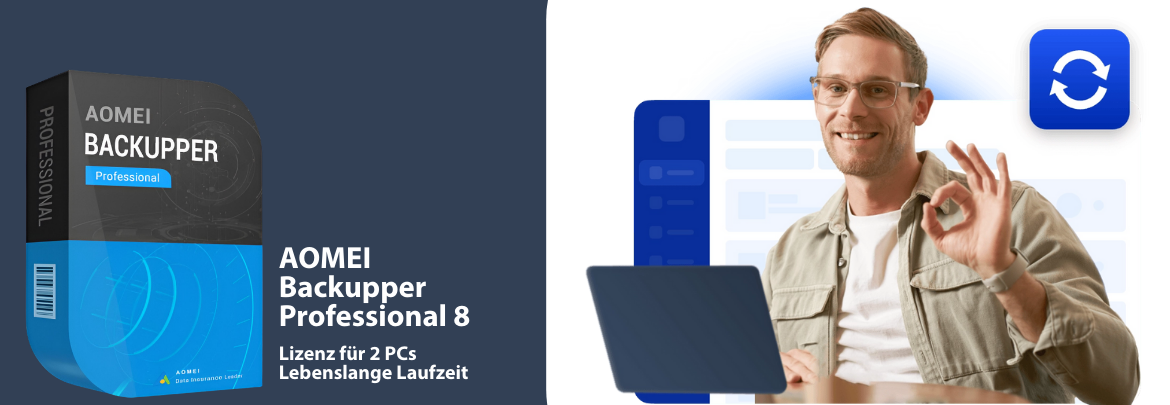 Mit der Backup-Software Aomei Backupper PRO sichern Sie Ordner und Dateien sowie Ihren kompletten Windows-PC (einschließlich aller Laufwerke, Partitionen und Windows-Konfiguration) als Image-Datei.