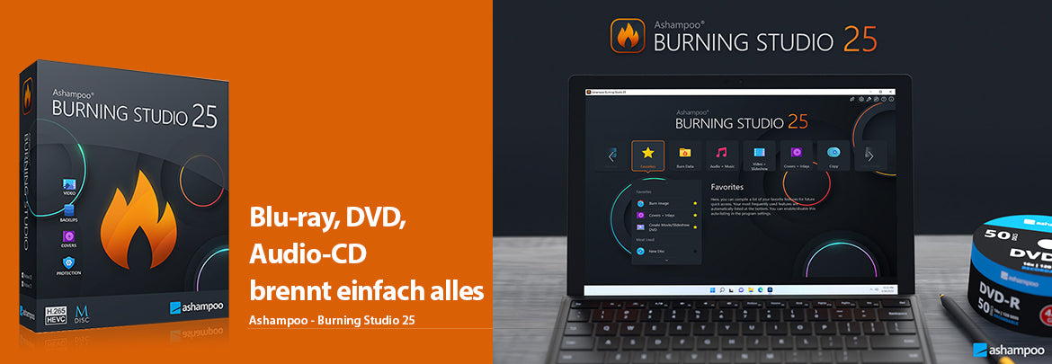 Das neue Ashampoo Burning Studio 25 ist eine leistungsstarke Brennsoftware und brennt Daten, Filme oder Musik auf jede CD, DVD oder Blu-ray-Disc. Zudem verfügt das Programm über vielseitige Multimedia-Funktionen, die auch anspruchsvolle Projekte ermöglichen und kreative Freiräume lassen.