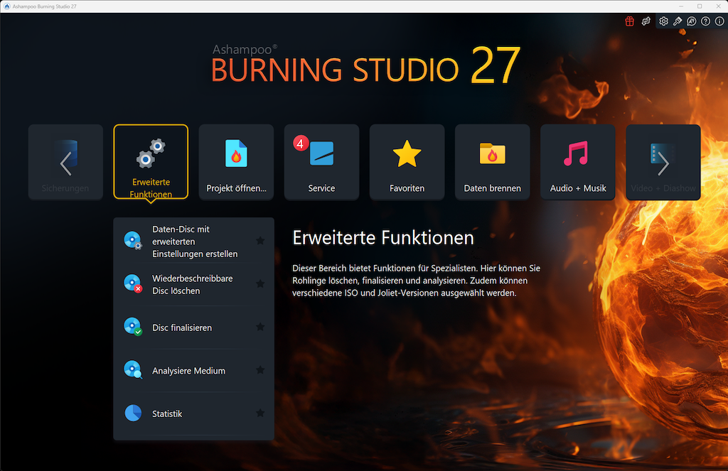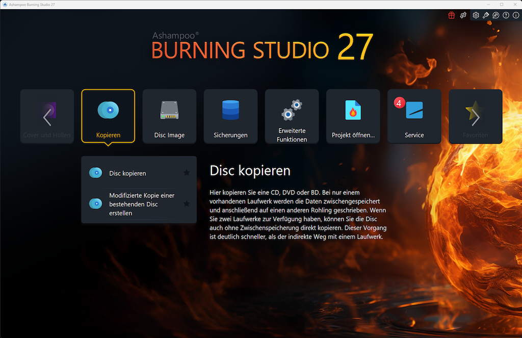 Ashampoo Burning Studio 27 ist die Komplettlösung zum Brennen, Kopieren, Rippen und Sichern von Daten, Musik und Filmen auf CD, DVD und Blu-ray.