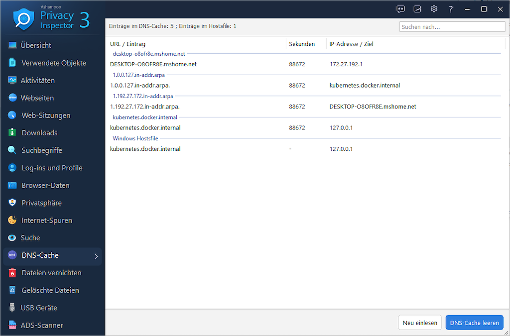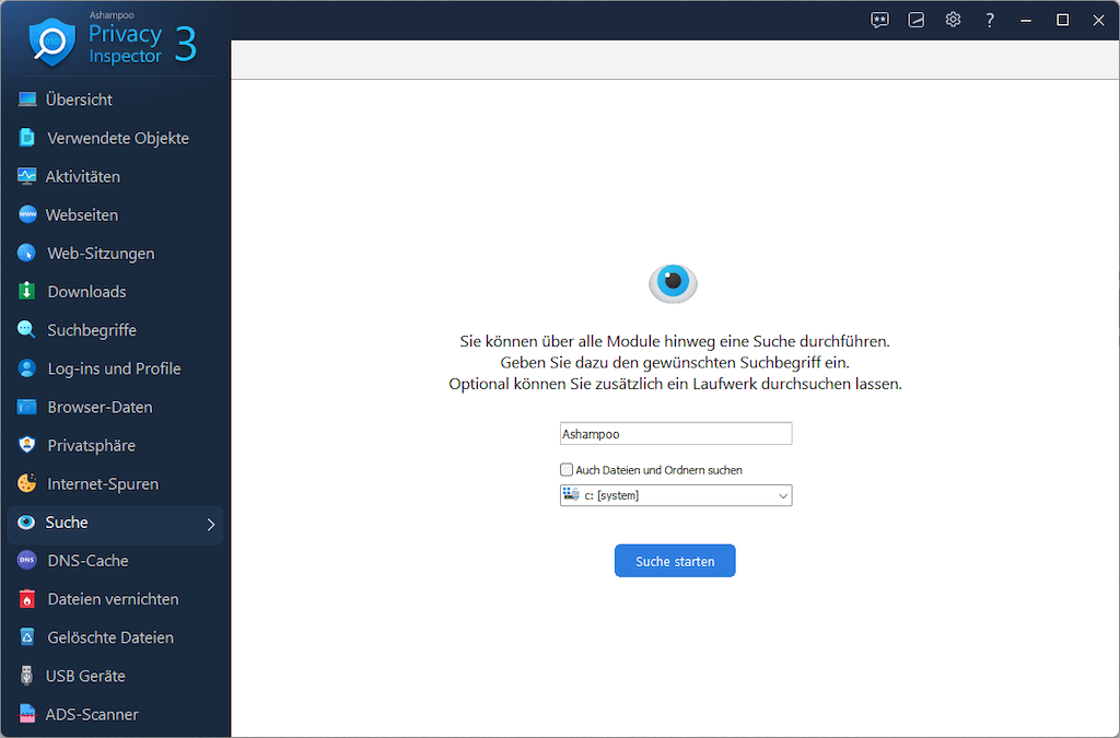 Zusätzlich bietet das Programm Module wie den DNS-Cache mit Anzeige und Löschfunktion sowie umfangreiche Privatsphäre-Einstellungen für Windows und Apps. Mit Version 3 kommen neue Funktionen hinzu, welche die Transparenz noch weiter erhöhen. Eine systemweite Suche findet Schlüsselwörter, Ordner und Dateien über wichtige Kategorien hinweg und deckt sensible oder verdächtige Inhalte zuverlässig auf.