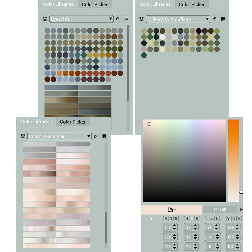 Fügen Sie natürliche Farben für Augen, Lippen und Haare mit dem umfassenden Satz an Porträtfarben hinzu.