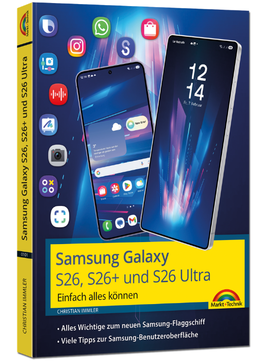 Das Buch unterstützt Sie bei der Ersteinrichtung Ihres Gerätes und vermittelt Ihnen alle wichtigen täglich genutzten Funktionen wie Fotografieren, Chatten, Mailen, Telefonieren und Surfen im Internet. Außerdem bekommen Sie Insidertipps zur Samsung-Oberfläche One UI 8.5, zu nützlichen Apps, zum Thema KI im Alltag und zu neuen Funktionen wie dem SuperSteady-Videomodus.