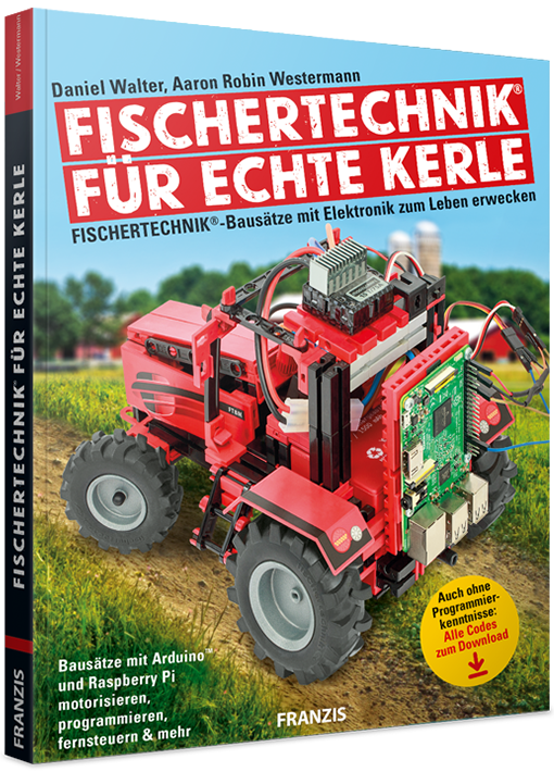 Oder löten Sie sich für wenig Geld eine Mehrkanal-Funkfernsteuerung im Fischertechnik-Look selbst zusammen und steuern Sie damit einen Traktor, eine kräftige Baumaschine oder einen großen Truck.