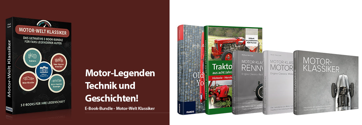 Tauchen Sie ein in die Geschichte des motorisierten Kulturguts: Dieses 5-teilige E-Book-Bundle ist die ultimative Sammlung für jeden, der „Benzin im Blut“ hat.