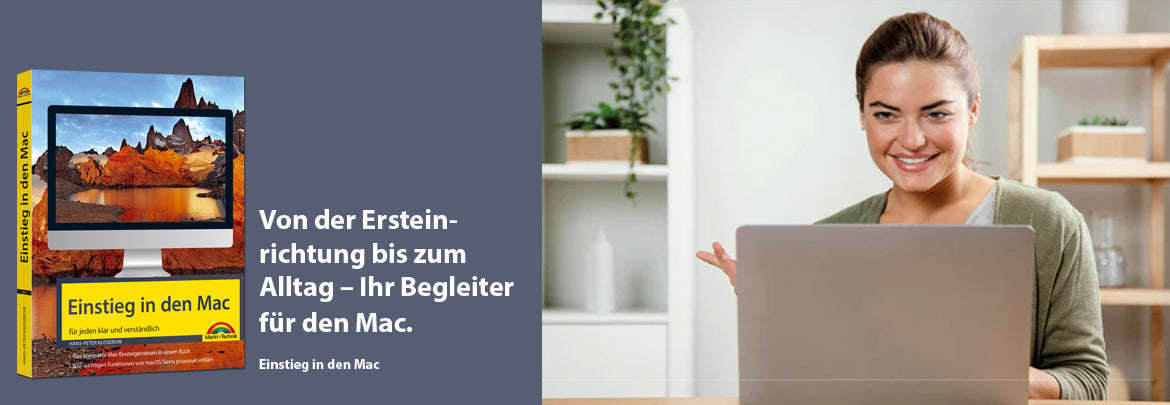 In leicht verständlichen Schrittanleitungen werden Sie in alle grundlegenden Funktionen eingeführt. Sie gehen direkt in die Praxis und nehmen die Ersteinrichtung Ihres Macs vor. Sie machen sich mit der Benutzeroberfläche sowie dem Finder vertraut. Sie richten Ihren E-Mail-Account ein, surfen mit Safari durchs Internet, nutzen die Fotos-App für bleibende Erinnerungen und lernen die Assistentin Siri sowie weitere Mac-Neuerungen kennen.