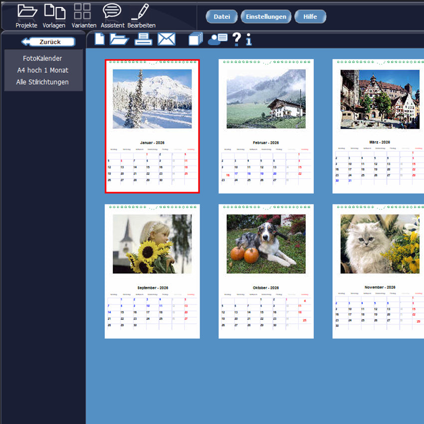 Unsere leistungsstarke und dennoch intuitiv bedienbare Software gibt Ihnen alle Werkzeuge an die Hand, um Ihren Kalender kreativ und einzigartig zu gestalten.