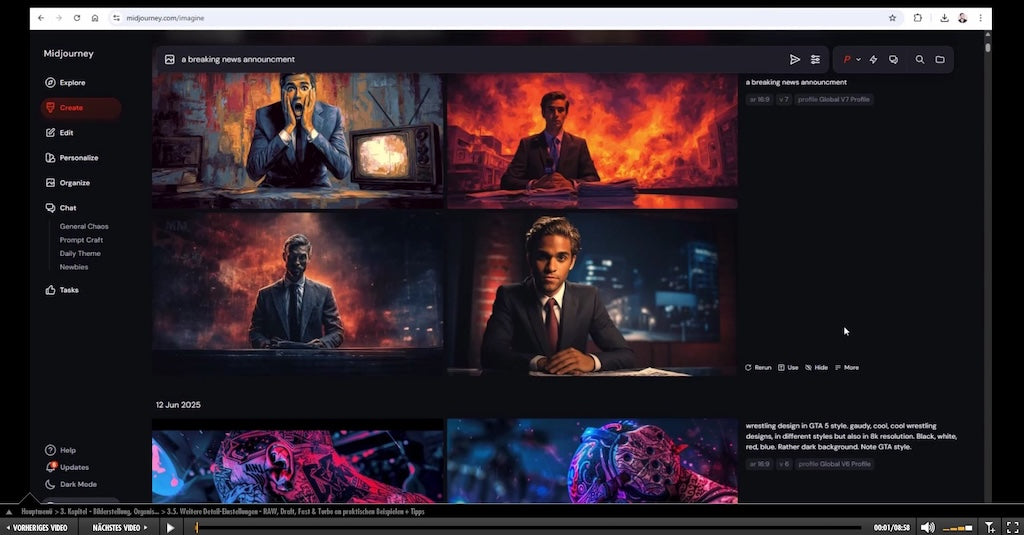 Mit Fokus auf die Bild- und erstmalig auch Videoerstellung mit Midjourney, kombiniert dieser Kurs theoretisches Verständnis mit praktischer Umsetzung, um kreatives Arbeiten mithilfe künstlicher Intelligenz zugänglich zu machen – vom Anfänger bis zum fortgeschrittenen Nutzer.