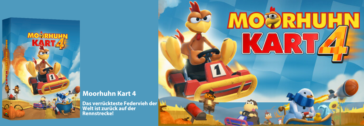 Schnapp dir dein Kart und stürze dich in das rasanteste Moorhuhn-Rennen aller Zeiten. Die ultimative Titeljagd bietet dir ein völlig neues Rennerlebnis mit verbesserter Fahrphysik, überarbeiteter Comicgrafik, Kopfüberfahrten durch Loopings, Crossplay und Online-Multiplayer.