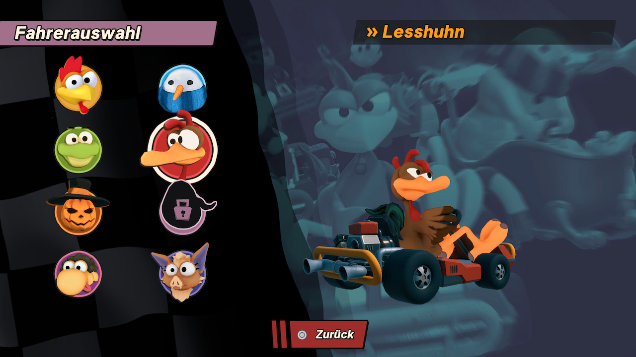 Tritt gegen verrückte Hühner und andere bekannte Charaktere an und zeige ihnen, wer der schnellste Fahrer ist.