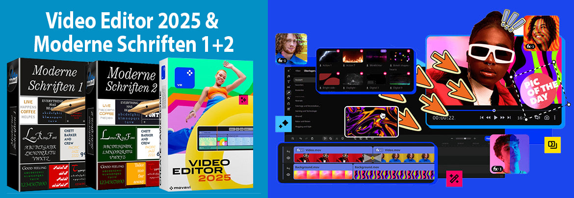 Movavi Video Editor 2025 + Moderne Schriften-Paket 1+2