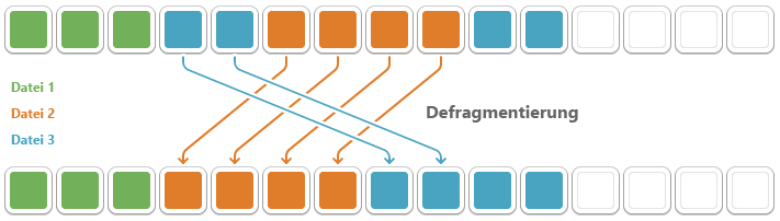 Fragmentierung tritt auf jedem Computer auf. Dateien werden beim Speichern zerstückelt und in Einzelteilen auf der Festplatte oder SSD gespeichert, wo gerade Platz ist. Defragmentierung kehrt dieses Speicherchaos um. Eine Defragmentierung sortiert die gespeicherten Dateien neu und fügt sie wieder zusammen.