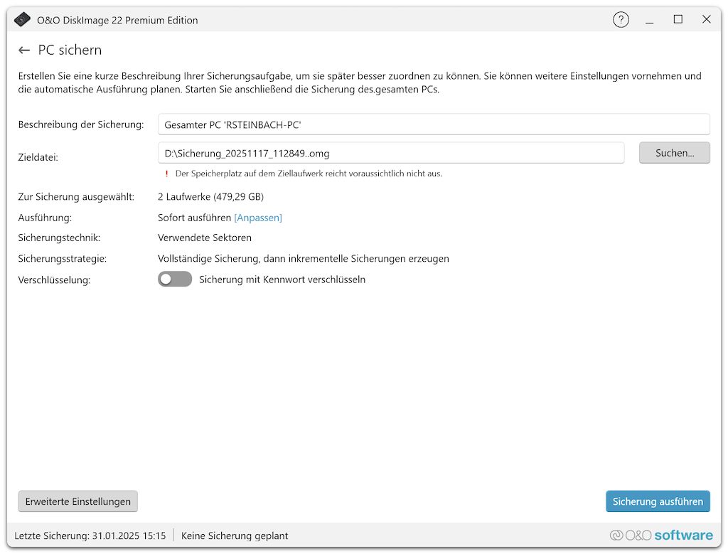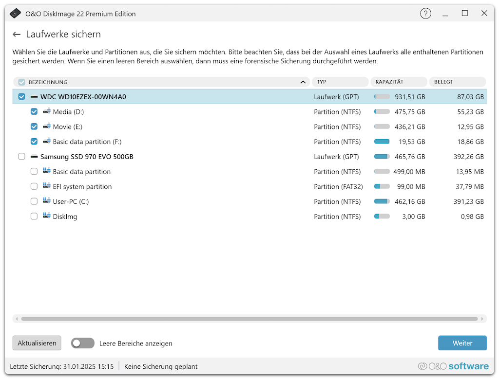 Gesamten Rechner oder einzelne Laufwerke sichern