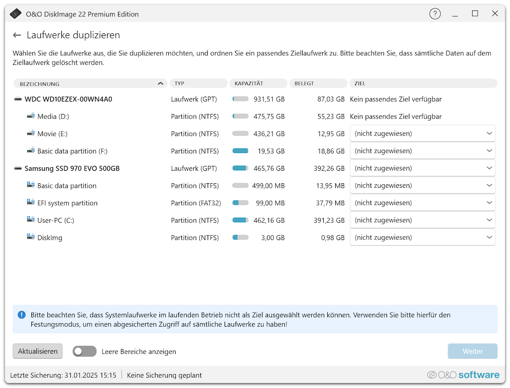 Duplizierung ganzer Laufwerke (1:1-Klon)