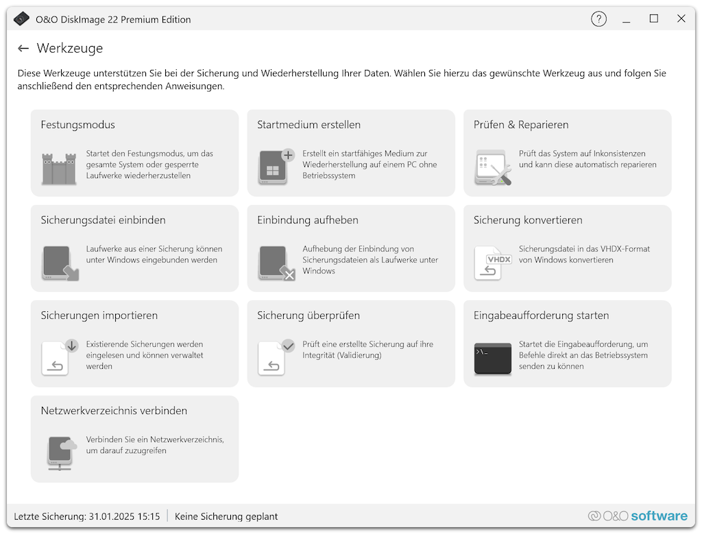 O&O DiskImage speichert die Wiederherstellungsumgebung direkt auf dem Rechner, so dass im Falle eines Systemausfalls direkt von dort gestartet werden kann – inklusive der letzten Sicherungen.