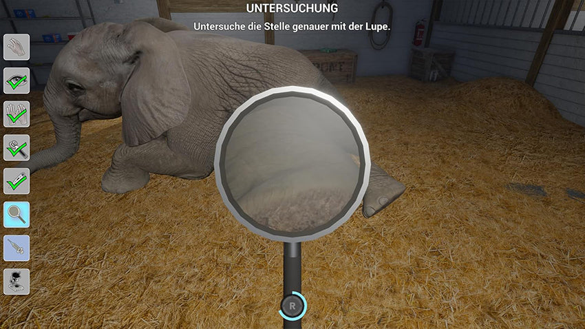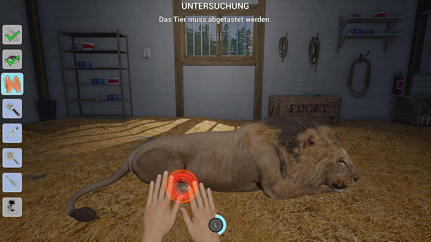 Untersuche die Tiere, finde heraus, was ihnen fehlt, und pflege sie gesund.