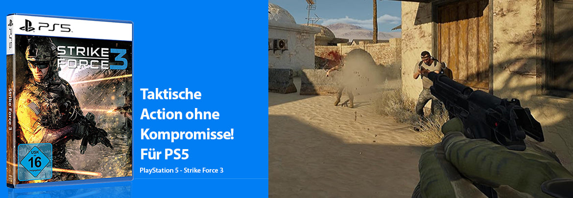 Erlebe mit Strike Force 3 für die PlayStation 5 einen atemberaubenden First-Person-Shooter, der taktisches Gameplay mit explosiver Action kombiniert.