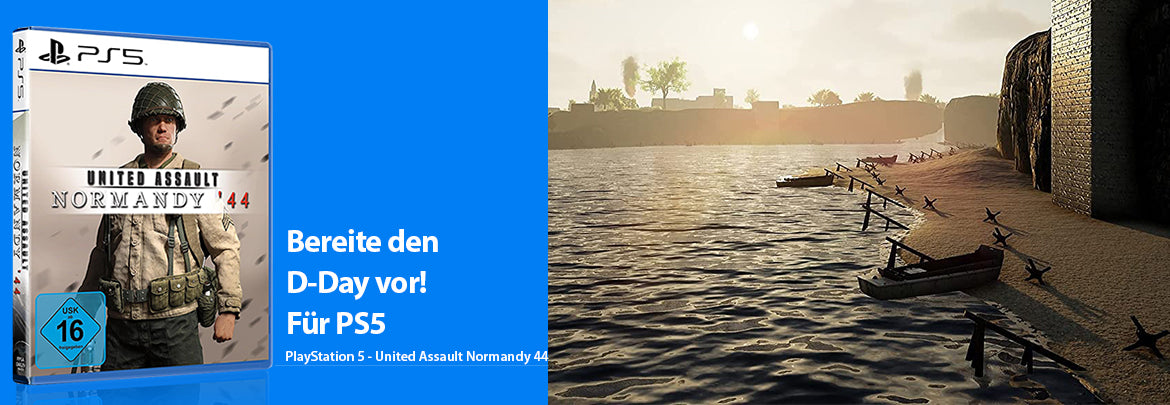 Mit "PS5 United Assault: Normandy 44" erlebst du die spannenden und herausfordernden Momente der Landung in der Normandie während des Zweiten Weltkriegs.