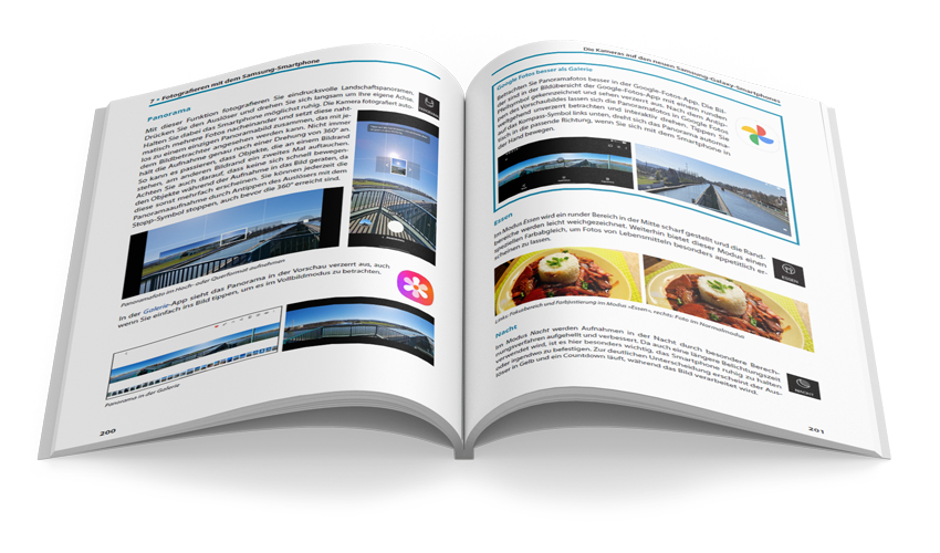 Die Möglichkeiten für tolle Fotos, die die vier Kameras bieten, werden ebenfalls anschaulich beschrieben. So haben Sie Ihr neues Gerät aus der Samsung Galaxy A-Serie jederzeit im Griff.