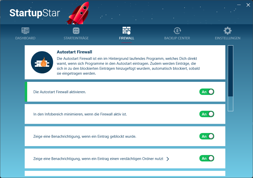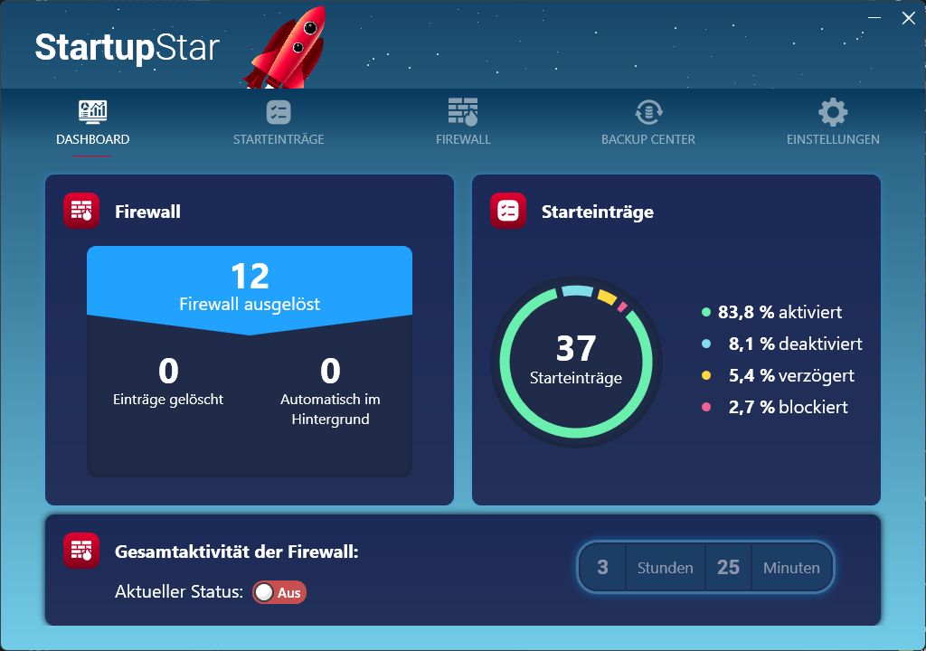 Im Dashboard wird Ihnen angezeigt, wie viele Starteinträge de- und aktiviert, blockiert oder verzögert sind und einen schnellen PC Start verhindern.