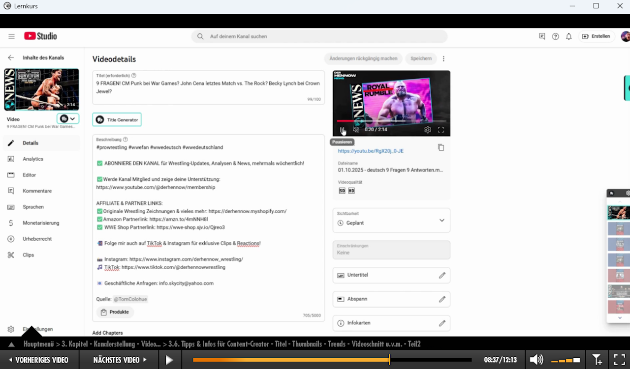 Meistern Sie den Video-Upload und lernen Sie, wie Sie Videos professionell veröffentlichen, Titel nach YouTube-SEO-Kriterien vergeben und die notwendigen Datenschutzeinstellungen vornehmen. Darüber hinaus behandeln wir essenzielle Themen wie Urheberrecht und die sichere Nutzung der Kommentarfunktion, damit Sie auf YouTube verantwortungsvoll agieren.