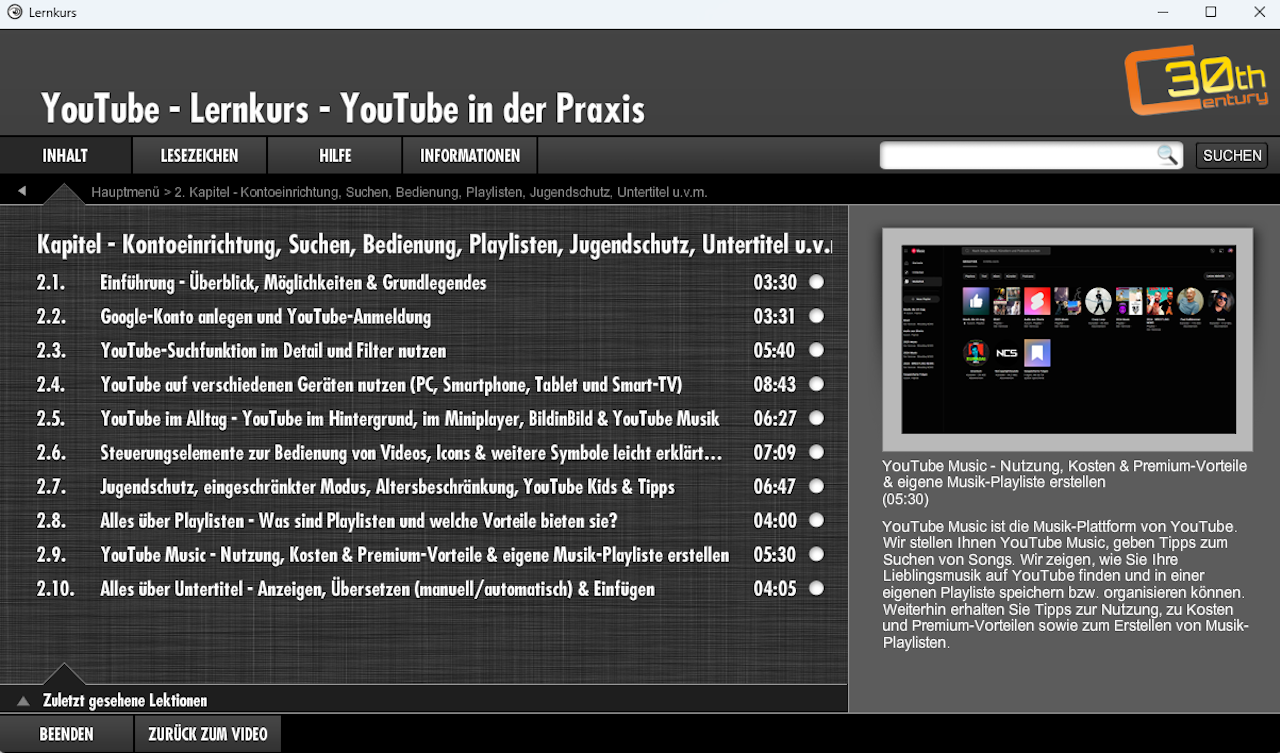 Lernen Sie in Ihrem eigenen Tempo mit über 2,5 Stunden Umfangreichem Videomaterial